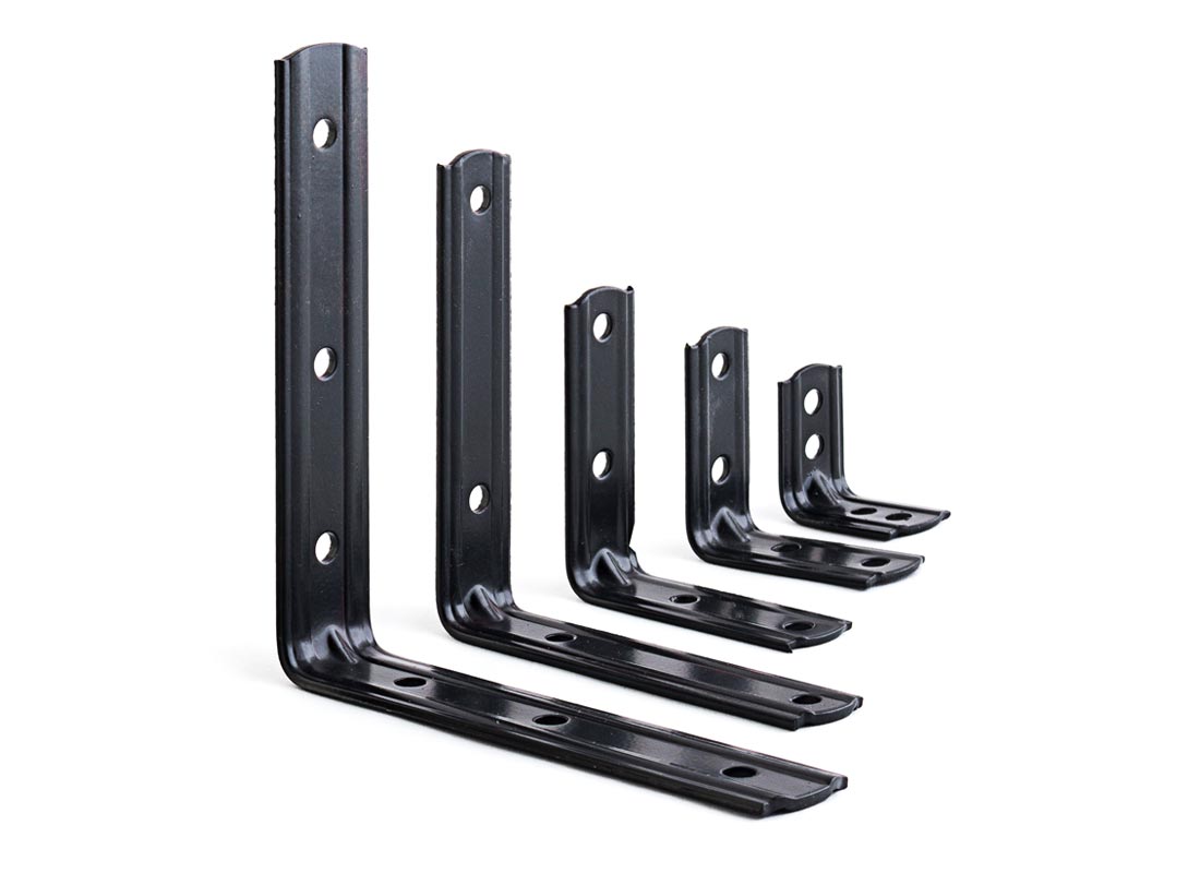 Se utilizan para sostener y unir todo tipo de estantes, mostradores, etc Fabricadas con material de chapa doble decapado laminada en frío de 1.25mm de espesor para las mas chicas y 2mm para las mas grandes. Posee una estria en el angulo obteniendo asi un refuerzo. El largo de la misma va a depender del largo del estante. Todas las terminaciones blanco y negro son en pintura epoxi horneada a altas temperaturas.