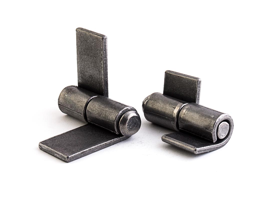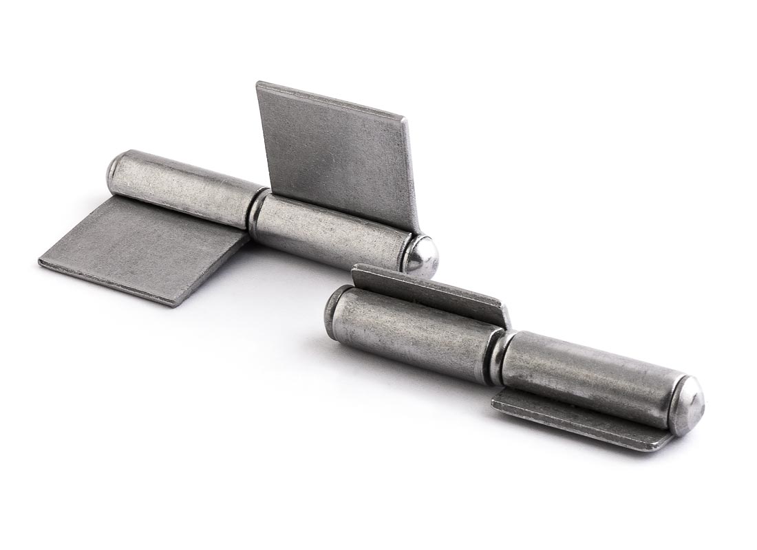 Utilizadas ganeralmente en aberturas con marco y hoja metalicas, debido a que se sueldan en las mismas. Estan fabricadas con excelente material de chapa laminada en frio doble decapado, en distintas variedades de espesores para todo tipo de puertas, como ser, 1.5mm, 2mm, 2.5mm, 3mm, y 5mm. Vienen con variantes en altura y tambien en el ancho, pudiendo ser las dos alas largas, las dos alas cortas o un ala corta y una larga, de acuerdo a la comodidad a la hora de soldar en la abertura. Las bisagras de 3 y 5mm vienen con ejes centrales reforzados de 9 y 12mm, debído a que se utilizan generalmente en portones y rejas donde peso de los mismos es elevado.