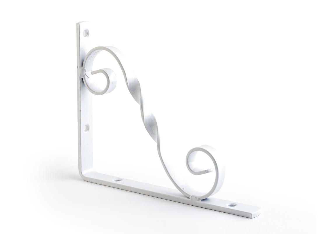 Se utilizan para sostener todo tipo de estantes, mesadas, mostradores, macetas, etc. Fabricadas con material SAE 1016 con plachuelas de 19x5mm para las medidas mas pequeñas y de 25x5mm para las mas grandes. El refuerzo transversal permite una mayor resistencia al peso, y el retorcido una mayor elegancia. El largo de la misma va a depender del largo del estante. Todas las terminaciones son en pintura epoxi horneada a altas temperaturas.